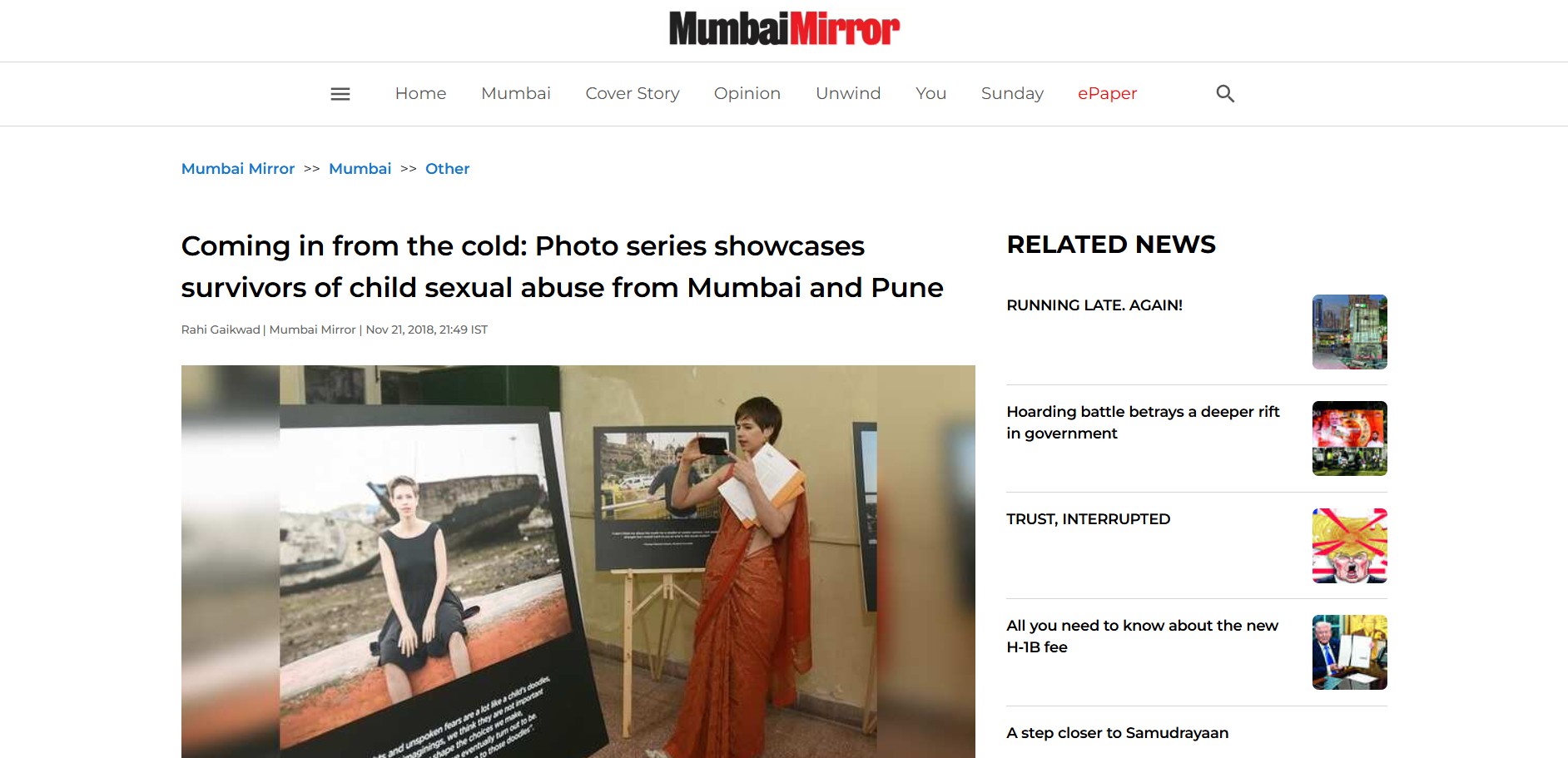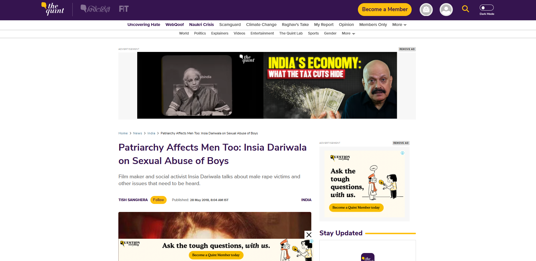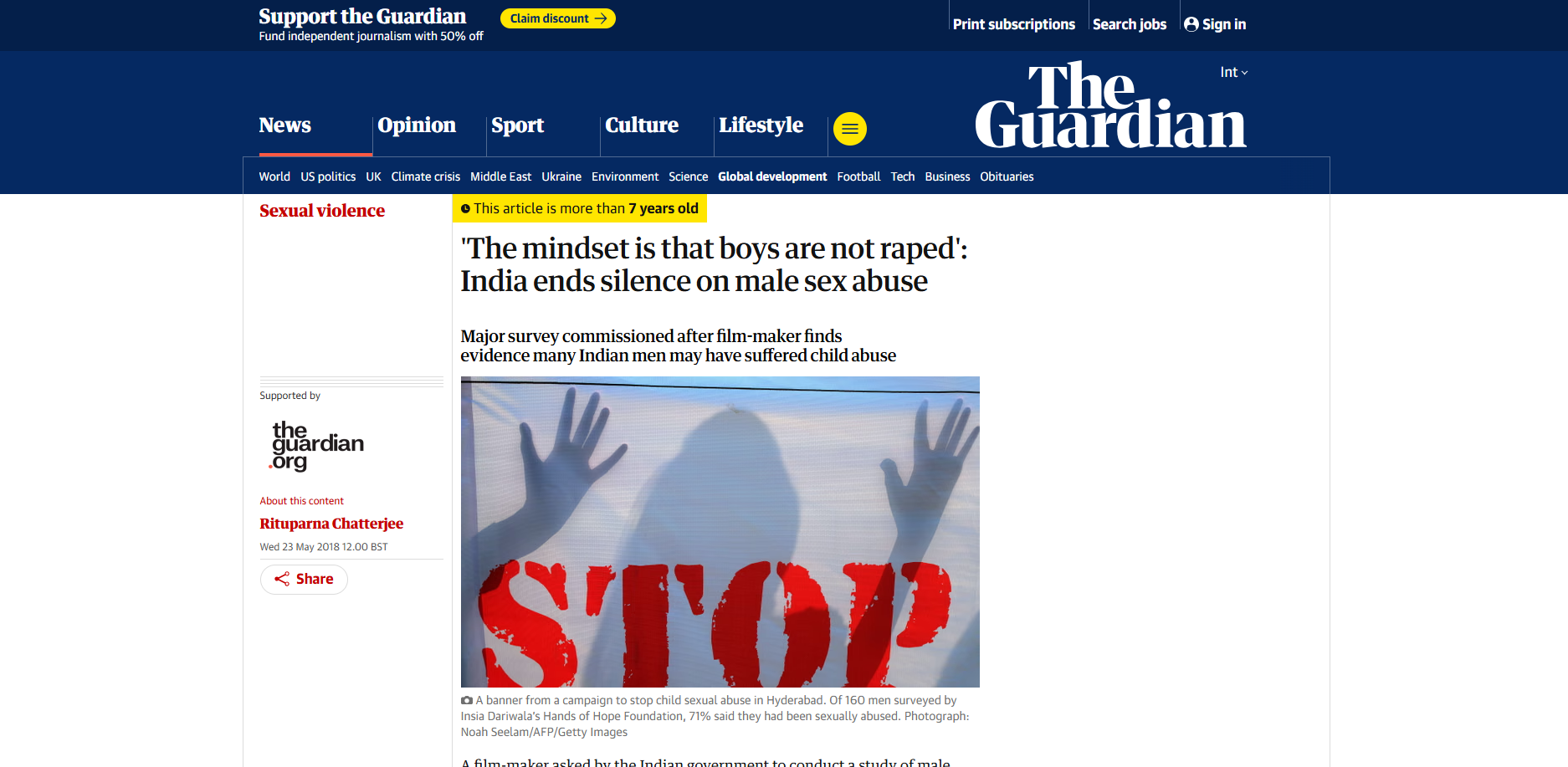 News Government to amend POCSO Act to make it gender-neutral: Women and Child Development Ministry Read full article First ever Photo Exhibit on Child Sexual Abuse-End the Isolation Read full article Humanitarian Award for our Founder Read full article The mindset is that boys are not raped': India ends silence on male sex abuse Read full article Treat abused boys on a par with girl survivors: Maneka Gandhi Read full article The boys are not safe. Mirror Now with Faye Dsouza Read full article The Quint – “Patriarchy Affects Men Too: Insia Dariwala on Sexual Abuse of Boys” Read full article MY INDIAN LIFE SERIES, BBC, WITH KALKI KOECHLIN Read full article Talks By Our Founder INSIA DARIWALAFIGO 2018, BRAZILTEDX TALK BITS PILANISAFE IRELAND SUMMIT 2018, IRELANDThe Power of Story Telling THE MOHUA SHOWMANTHAN TALKNURTURE LIFE TALK ON CSAWHY MALE CHILD SEXUAL ABUSE IS NOT TALKED ABOUTTHE CANDY MAN 2009